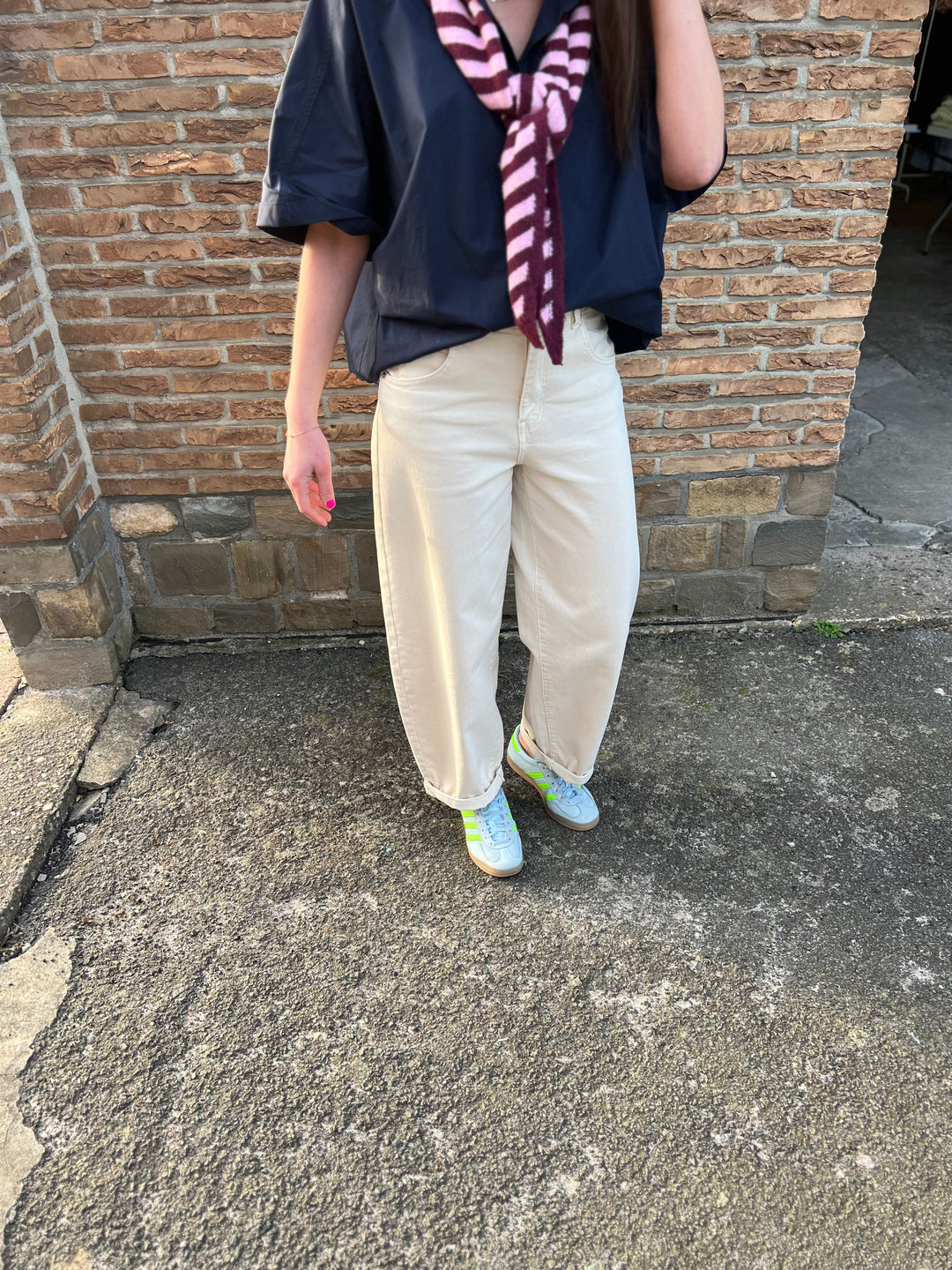 beige balloon jeans