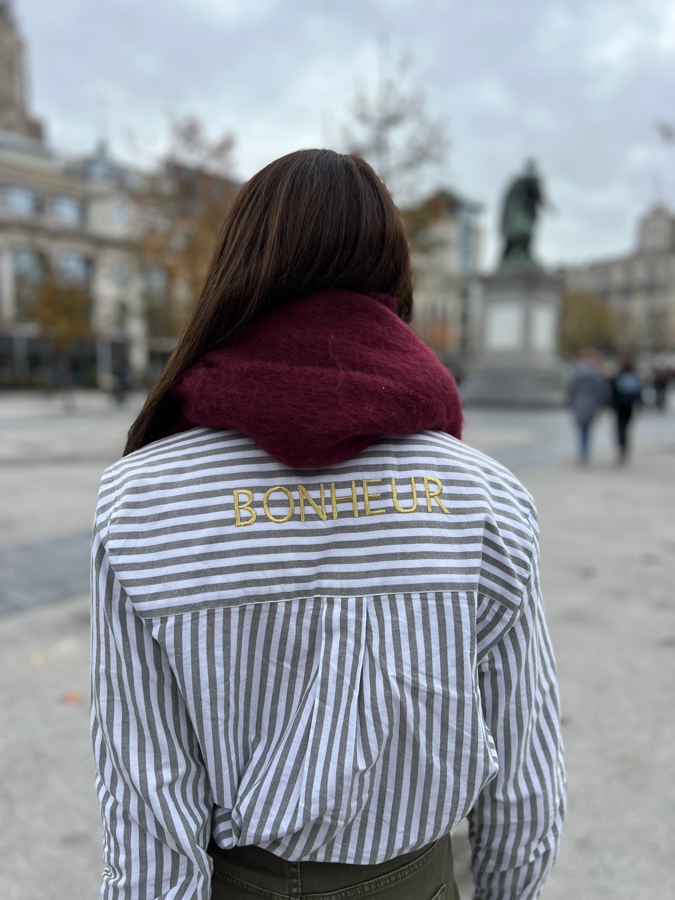 gestreepte blouse met bonheur opschrift